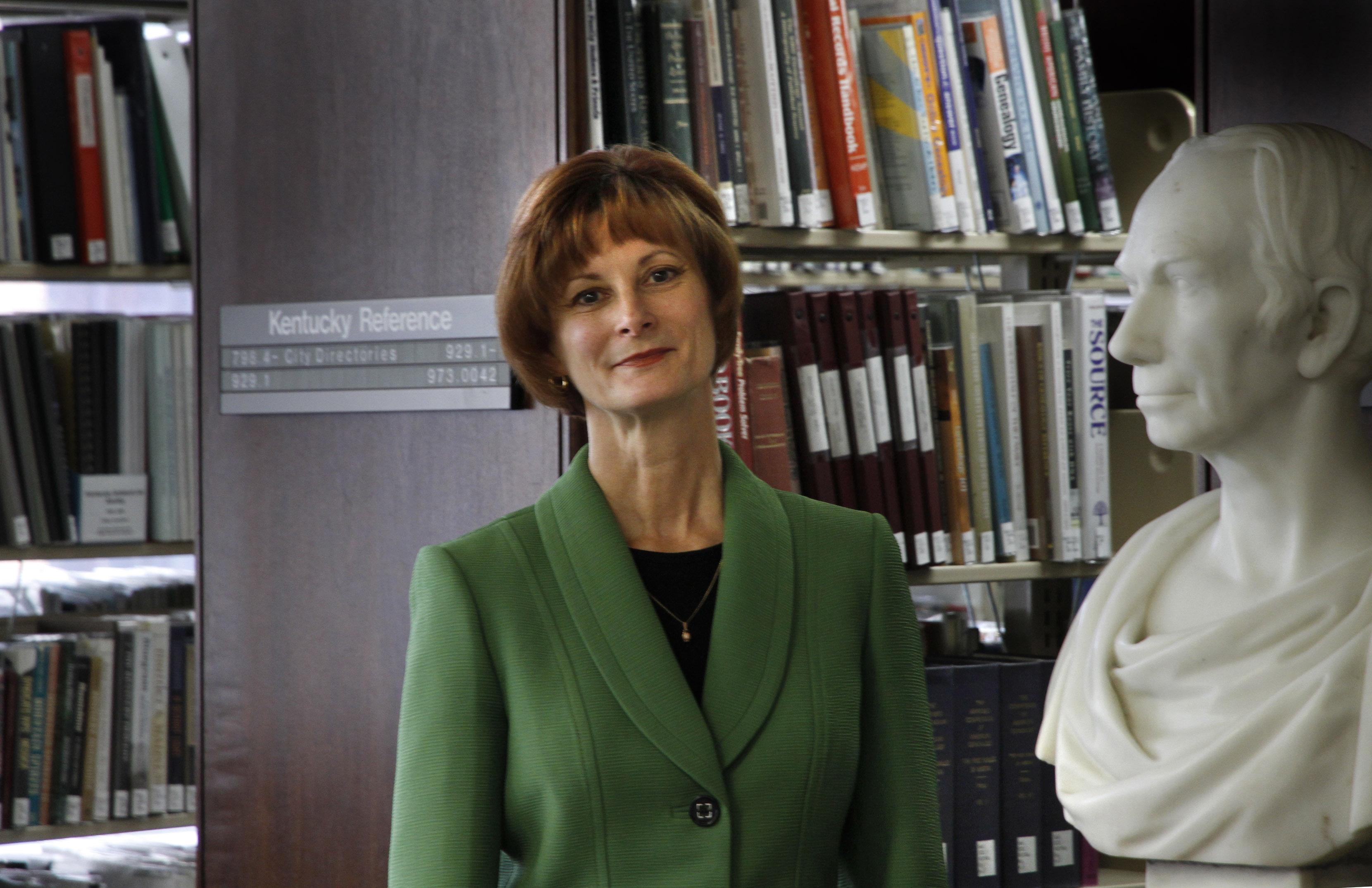 Director Ann Hammond shown in the Kentucky Reference Room on Thursday, Dec. 2, 2010 at the Lexington Public Library on Main St. in Lexington, Ky. (That s a bust of Henry Clay at right.) Ann Hammond is settling in as the new director of the Lexington Public Library. Photo by David Perry.