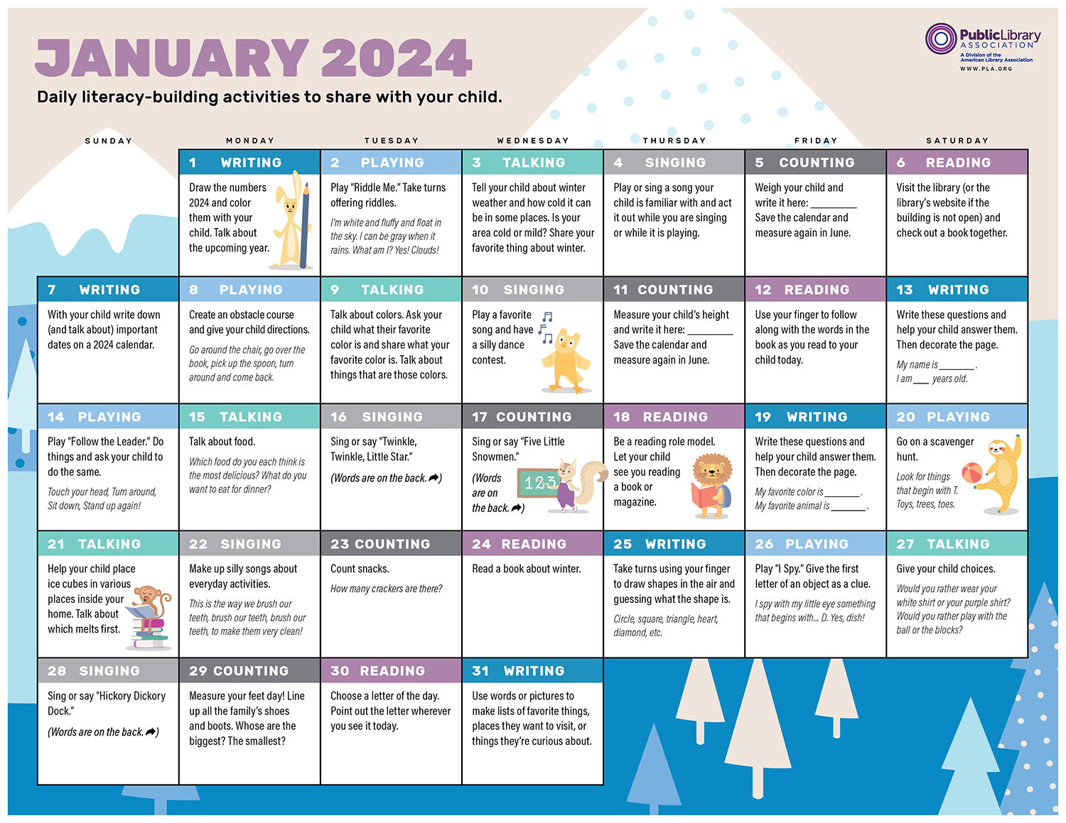 Unlock a Year of Early Literacy Adventures in 2024 with PLA’s Early Literacy Calendars